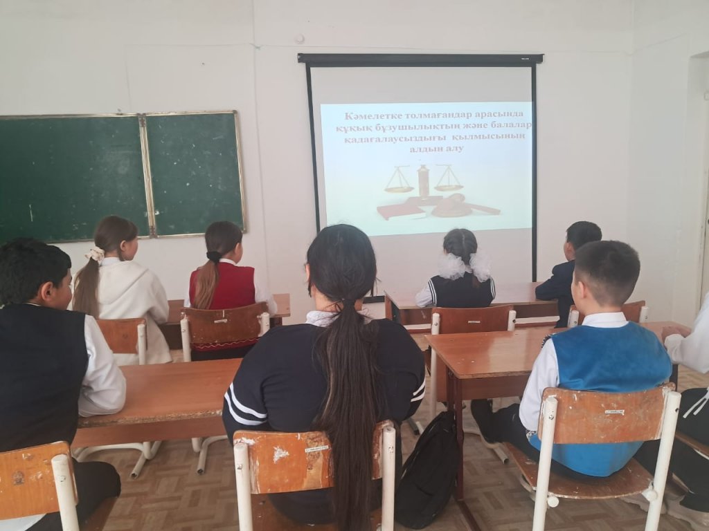 Баратай негізгі орта мектебінің 5- 8 сынып оқушыларымен жасөспірімнің өмір ағымында кездесетін қолайсыз жағдайлардың алдын алу және болдырмау мақсатында " Кәмелетке толмағандар арасында құқық бұзушылықтың және балалар қадағалаусыздығы қылмысы ның алдын алу"...