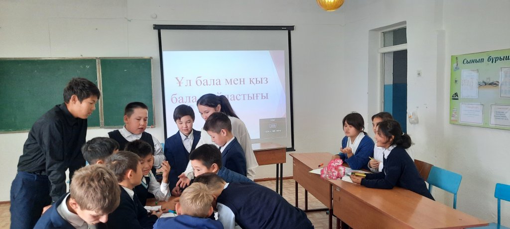 Ұл бала мен қыз бала сыйластығы тақырыбында мектеп оқушыларымен әңгіме жүргізілді. Әңгіме барысында Ұлдар мен қыздар арсындағы құрмет, мейірімділік, сыйластық көрсетілді.