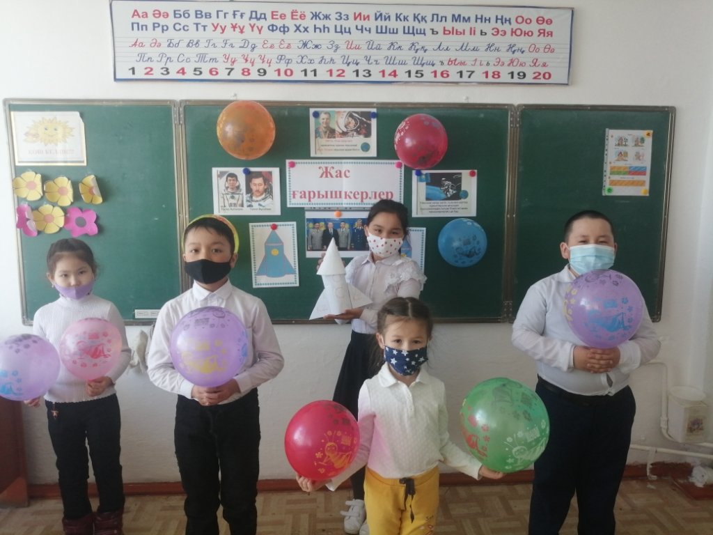 Мектебімізде бастауыш сынып арасында 12 сәуір "Ғарышкерлер күніне арналған тәрбие сағаты ұйымдастырылды.