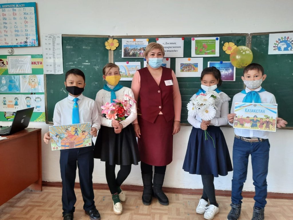 4-сыныпта "Достық шаңырағының астында" тақырыбында сынып сағаты өтті. Сынып сағаты 1 мамыр Қазақстан халықтарының бірлігі күніне арналды.
