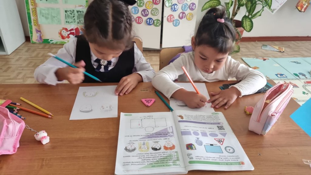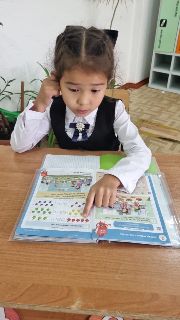 1-сынып оқушыларының сабақ барысында жұмыс жасау сәттері.