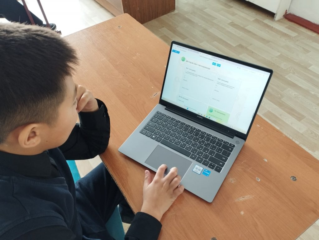 Баратай ауылының негізгі орта мектебінің пән мұғалімі Такауова А.Б 8-сынып оқушыларымен сабақ барысында TopIQ платформасын қолдануда.Сабақтың тақырыбы:"Ақпаратты өлшеу. Ықтималдық әдісі.