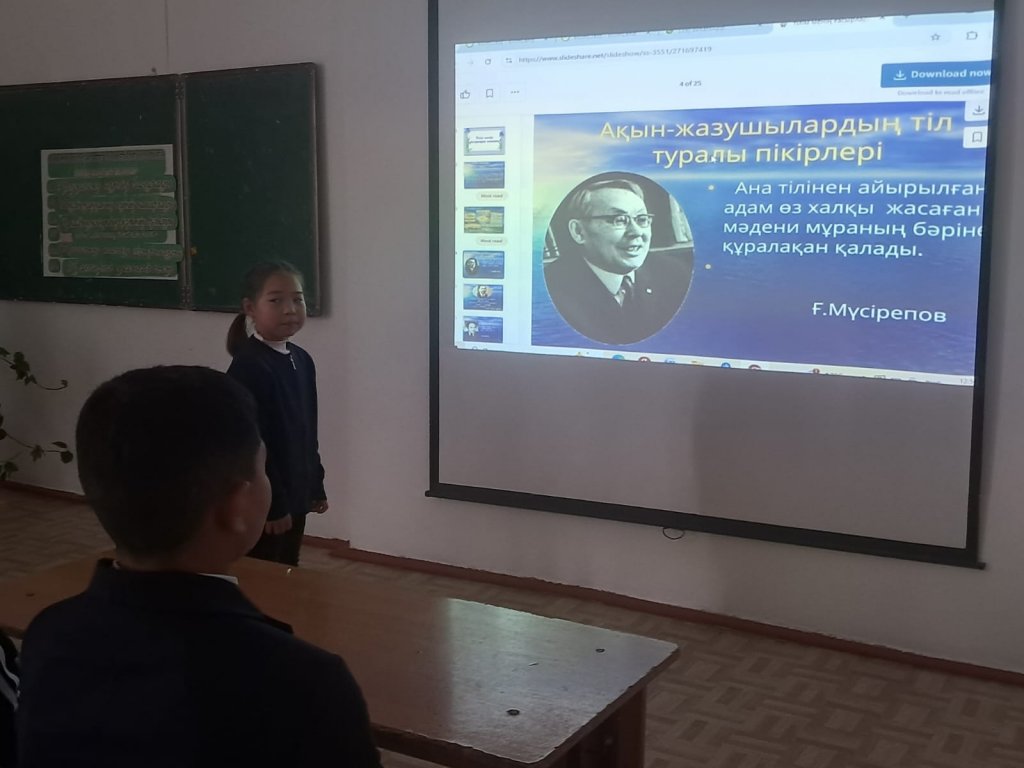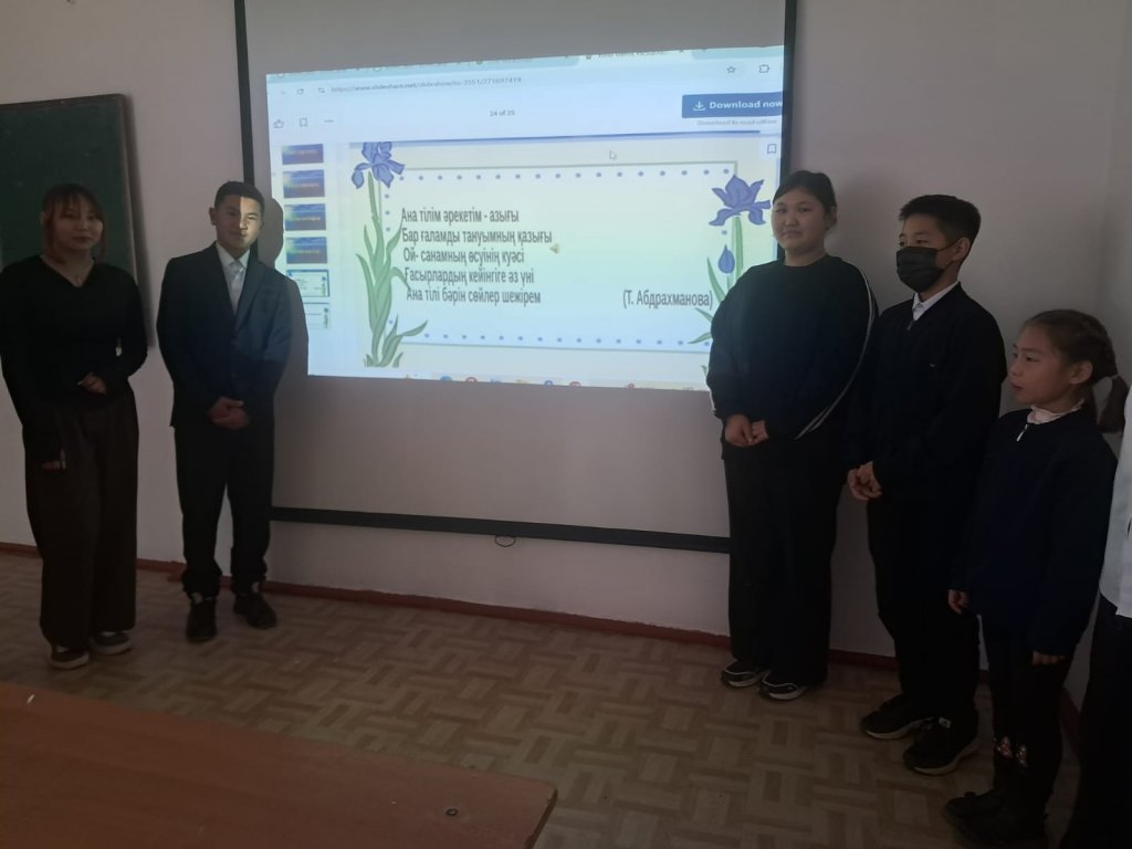 Баратай ауылының негізгі орта мектебінде тілдер мерекесі аясында 5-8 сынып оқушыларымен " Тілім менің ғасырларға аманат" тақырыбында сынып сағаты өткізілді.Мақсаты: Оқушыларды туған халқының тілін қастерлейтін саналы да парасатты азамат етіп тәрбиелеуге, өз ана тілінің қадыр- қасиетін біліп көркемдігін сезініп, сөз құдіреті түсініп, оның адам өміріндегі маңызын ұғынуға үйрету.